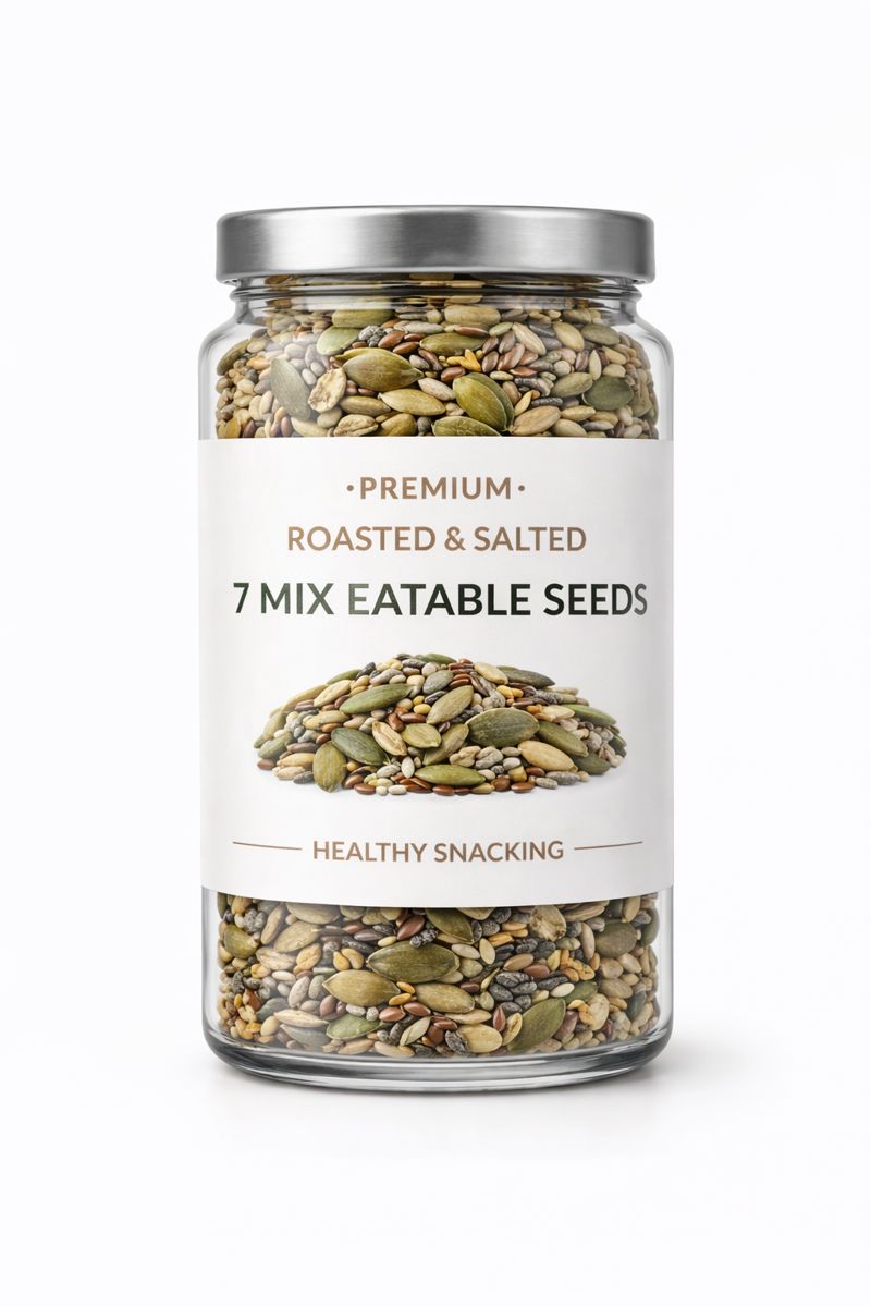 Small Seeds, Big Nutrition Say goodbye to unhealthy fried chips and hello to the smartest way to snack. Our Roasted Salted 7-Seed Mix is a powerhouse blend of nature’s finest edible seeds, slow-roasted to crispy perfection and lightly dusted with rock salt. This isn’t just “bird food”—it’s a savory, addiction-forming treat that explodes with flavor and nutrition in every spoonful. Whether you are on a Keto diet, a fitness journey, or just want a better desk snack, this mix delivers the crunch you crave without the guilt.
